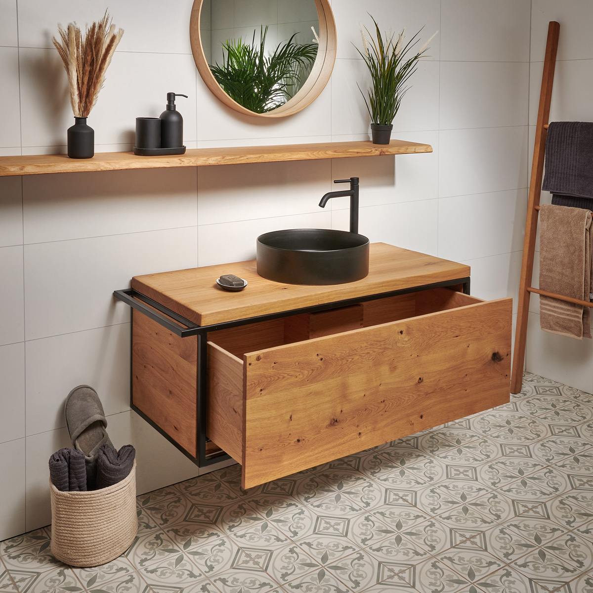 Badezimmer Waschtisch rustikal aus Massivholz mit Schublade