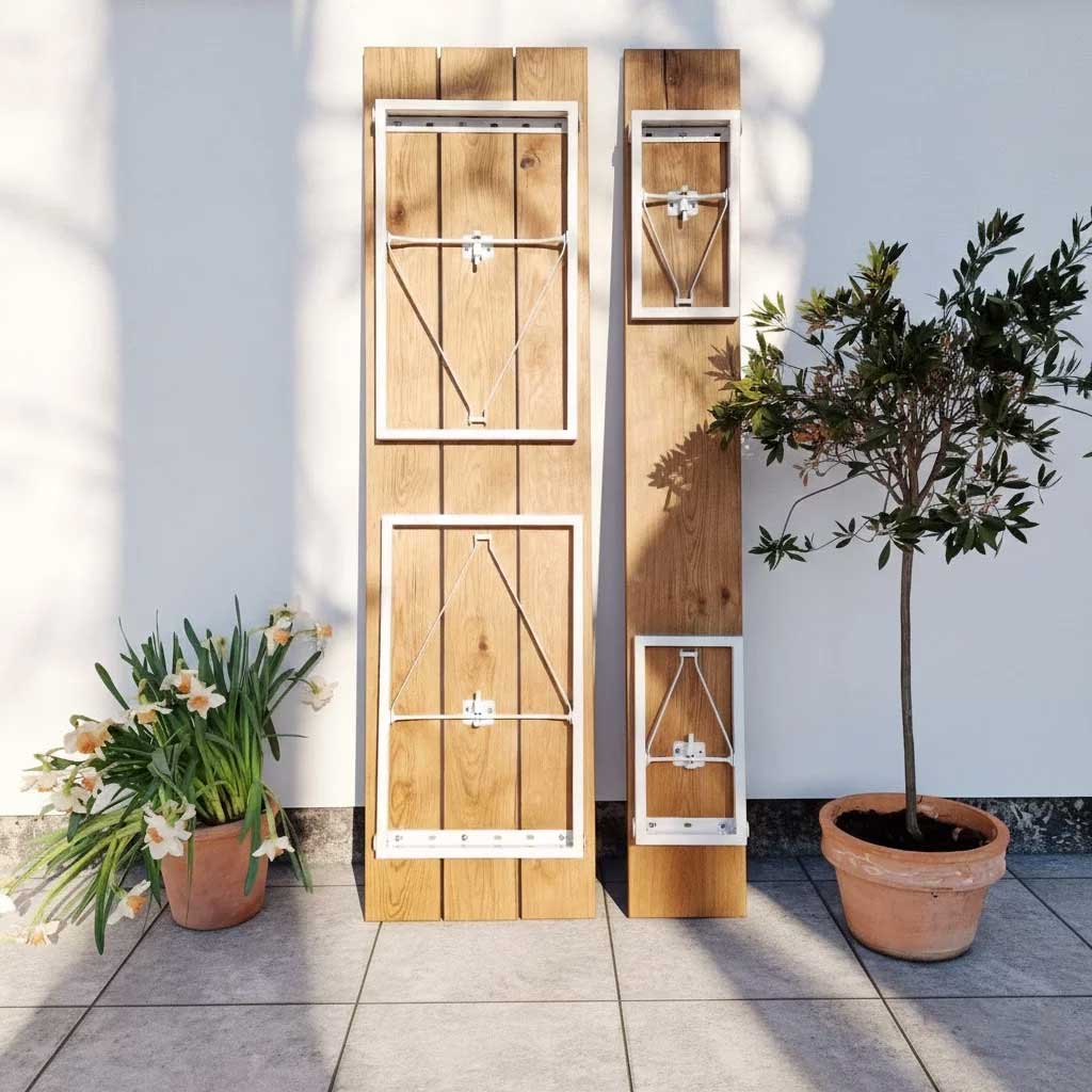 Wichtig: Holz arbeitet. Im Außenbereich kann sich über die Zeit eine graue Patina bilden, und es können Risse entstehen. Das ist normal und kein Qualitätsmangel. Mit Pflege lässt sich das Erscheinungsbild lange erhalten.
