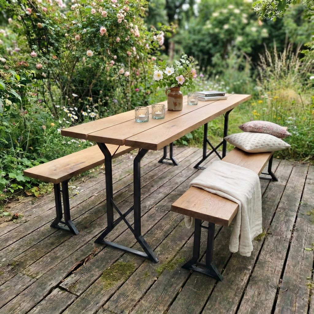 Die Bierzeltgarnitur Tuna ist nicht „für einen Sommer“ gebaut, sondern für viele Jahre. Massive Eiche bringt genau die Langlebigkeit und die ehrliche Wertigkeit, die man bei jedem Aufstellen spürt. Und weil sie nicht nur Sitzgruppe, sondern bei Bedarf auch Buffetfläche, Arbeitstisch oder lange Tafel sein kann, wird sie schnell zum festen Bestandteil jeder guten Runde – ein Stück SponHolz für zu Hause, das immer wieder gern zum Einsatz kommt.