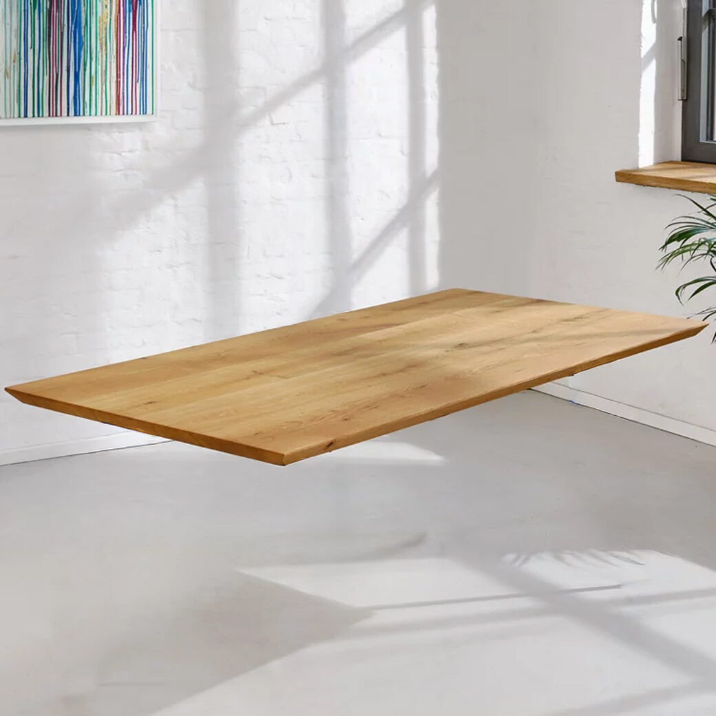 Auf Wunschmaß gefertigt, überzeugt jede Tischplatte durch eine harmonische Maserung, sorgfältige Verarbeitung und langlebige Qualität.